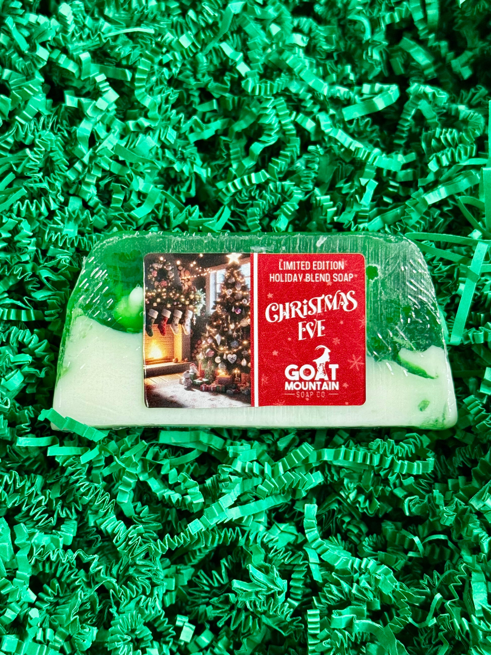 Christmas Soap Ingredients: coconut oil (cocos nucifera), safflower oil (carthamus tinctorius), glycerin (kosher, of vegetable origin), goats milk, purified water (aqua), sodium hydroxide (saponifying agent), sorbitol (moisturizer), sorbitan oleate (emulsifier), oat protein (avena sativa), titanium dioxide (mineral whitener). Fragrance oil and colour.